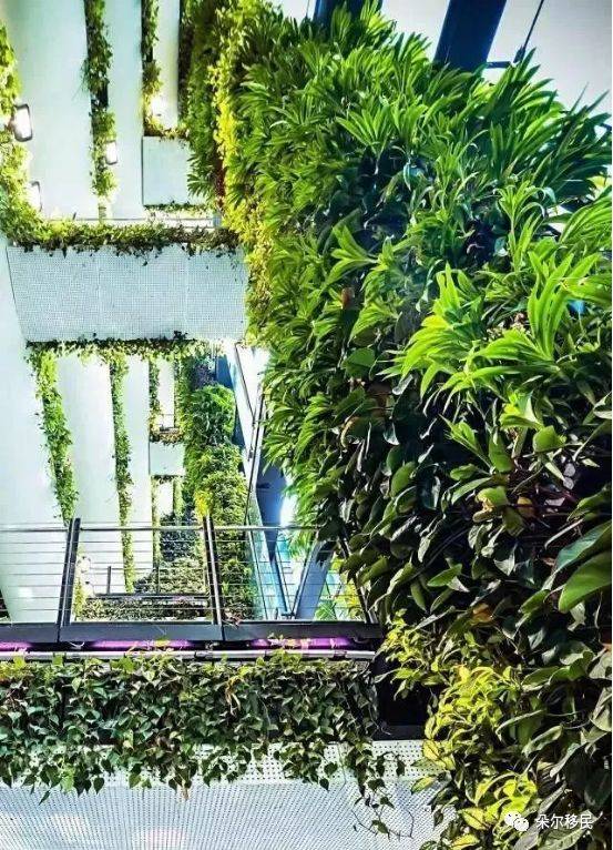 王太太:沒有,新加坡是公認的花園城市,人均8平方米綠地指標,綠化覆蓋率80%以上,空氣好的不得了。你看,樓裏面都是綠色的植物。
