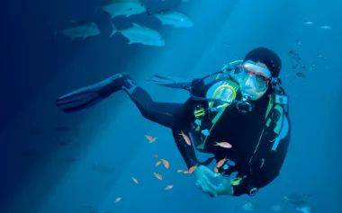 就這麽坐著,透過清澈的玻璃拱頂凝望著深不可測的藍色海底世界在眼前一覽無遺地鋪展開來……幻想自己是一條魚兒,自由自在的遊翔于大海……