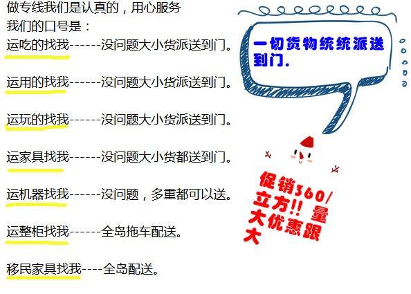 促銷運貨(空運海運)惠顧新加坡各界人士!