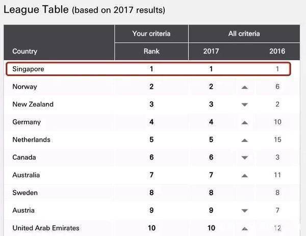 彙豐銀行發布的全球最佳移民目的地報告中,新加坡位居“最適合移民者居住和生活的地方”投票榜首位。2015、2016、2017年新加坡仍高居榜首。