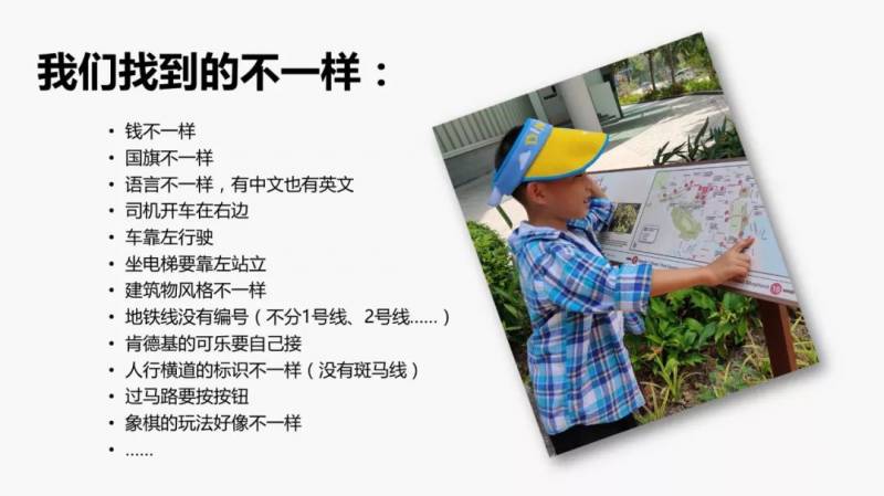 我答應他在新加坡可以買幾樣喜歡的禮物,但我跟他說,我們也有一個任務挑戰。要發現新加坡和咱們中國至少十處不一樣的地方。