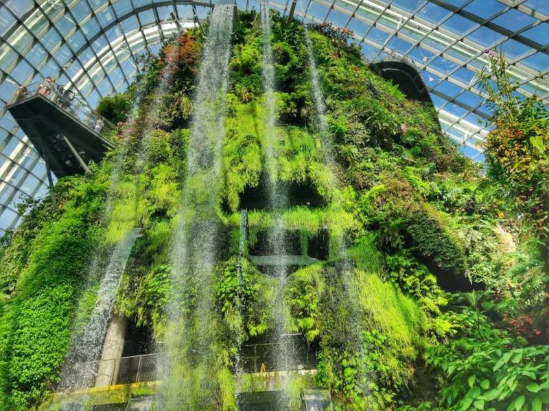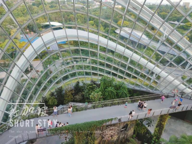 雲霧林是是一個穹頂大玻璃房子,一進去就看到6層的瀑布傾瀉而下,水霧彌漫在空氣裏,非常清涼。