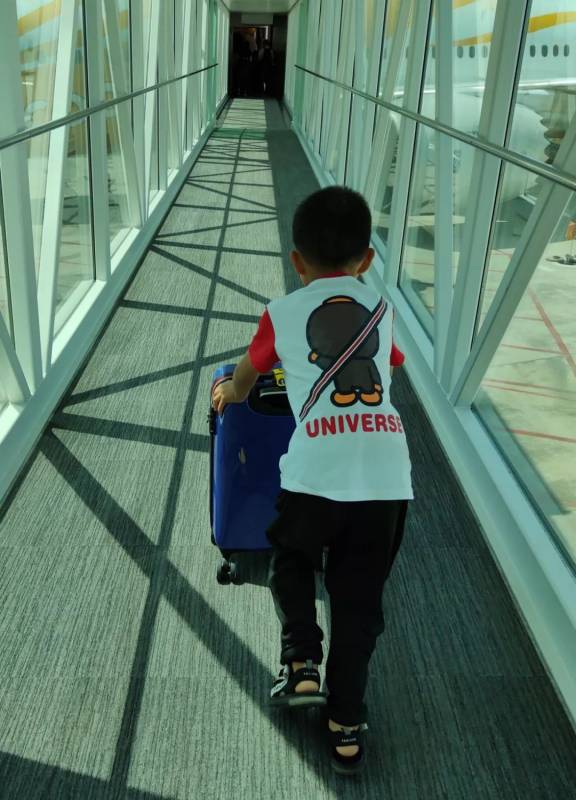 他也問了很多問題。媽媽,爲什麽飛機上不讓帶水呢?飛機上有水喝嗎,有廁所嗎?那些傳送帶上的行李到哪裏去了呢?爲什麽飛機上的窗戶那麽小呢?……如果第一次帶娃做飛機,做好回答十萬個爲什麽的准備。當然也特別珍惜這第一次,因爲好奇心只有這麽第一次呀。