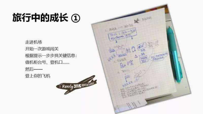 坐上飛機後,我給他畫了一個流程圖,引導他怎麽看機票上的信息。返程的時候,我就特意考考他。給看他看我們的航班號,讓他找值機櫃台。