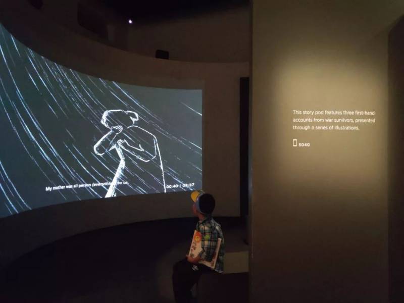 新加坡被日本侵略占領的那段曆史,稱爲苦難昭南。在博物館裏有一個專館進行展示。沒有聲淚俱下的渲染和控訴,只有客觀的展示。展館裏有一個短片,非常簡單但直觀地呈現了當年日本東南亞擴展的過程。還有一個環形屏幕,用手繪動畫展示了一段被侵略的人物曆史。