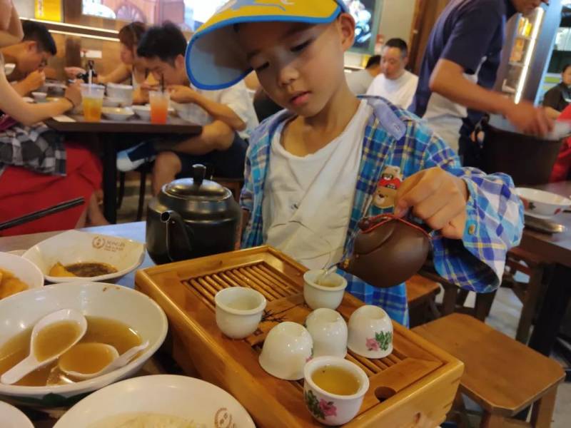 兒子很專注地給我倒茶,我獨自慢慢享受。