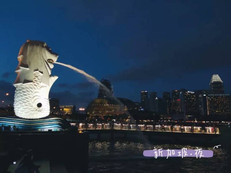 從濱海灣花園出來,經過魚尾獅公園。魚尾獅和海灣的夜景,也是新加坡的一大特色。噴水的魚尾獅是新加坡的象征,也是國家城市的守衛者。
