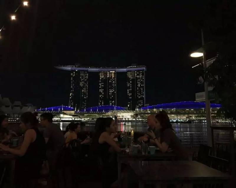 一天遊玩下來,想必是累的。但凡還有一絲精力,我一定勸你不要放棄這個地方–魚尾獅公園。很多人來新加坡,都會不免俗地和魚尾獅公園的噴水雕像來個合影,但他們爲了拍張清晰的合影,大多是白天來,這樣便會錯過夜景絕美的濱海灣。當夜幕降臨,華燈初上,這裏的夜便被絢麗的燈光所包裹。Overeasy是一家酒吧,正對著金沙酒店,面對這樣的夜景,小酌一杯,豈不快哉!