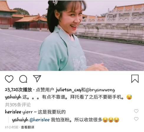 雅慧昨日在IG上載一視頻,附上注明:“這……有點不靠譜。拜托看了之後不要砸手機。”,黃暄婷和王祿江回應:“omg!”(我的天”),潘玲玲直接吐槽:“好想掐你!”,還有粉絲說:好想打你、想拿磚頭砸人。