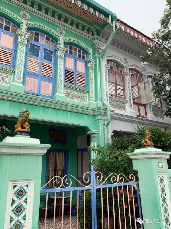 它們非常華麗,以龍、鳥、螃蟹等形象以及歐洲進口的色彩豔麗的瓷磚作爲裝飾。大門處的兩扇矮搖門也是排屋的特色之一,既可以防止偷窺,又不影響空氣流通。