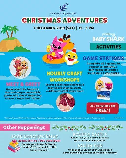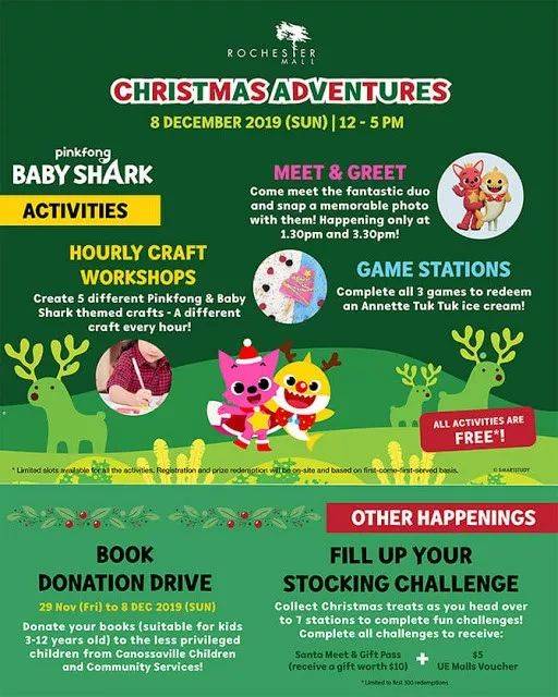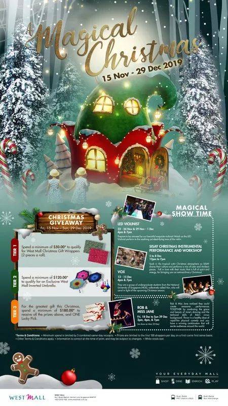 單張收據消費滿30新幣即可參與實裏達購物中心爲您准備的精彩聖誕活動,包括4米高的互動屏幕,充氣城堡中的互動神奇滑梯,Bishy Bashy 三人對戰,以及挑戰跳舞機等。