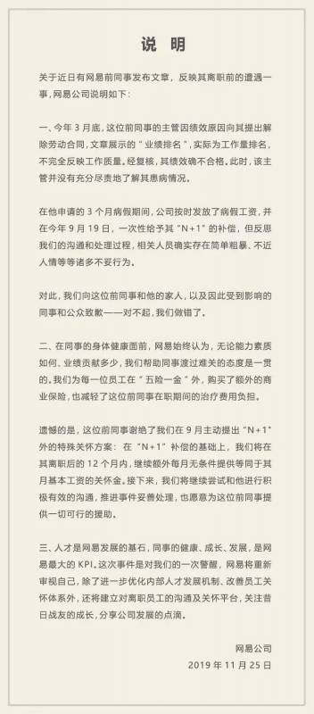 “經過反思我們(網易)的溝通和處理過程,相關人員確實存在簡單粗暴、不近人情等等諸多不妥行爲。”