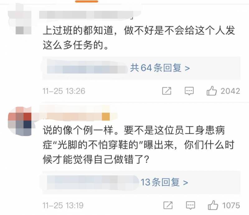 公司從集團層面安排了專項小組,已經在進行了解核實。核實情況需要一點時間,但可以明確的是,員工健康當前,公司所有的支持和關懷都不會因員工離職而終結。