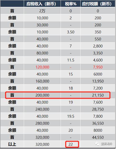 3、個人所得稅(最高稅率22%,中國最高45%)