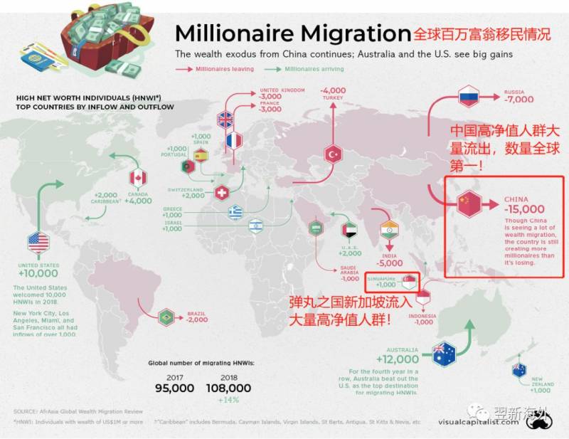 2018年全球百萬富翁移民圖,是新加坡投資熱度最直觀的說明。