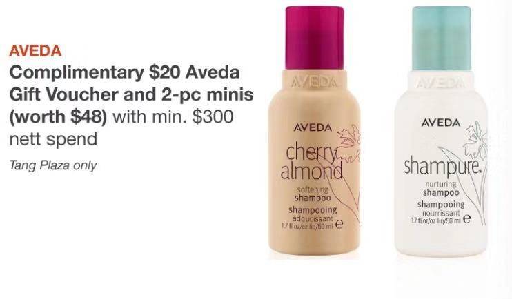 消費滿$300, 即贈$20禮券一張以及洗發水小樣兩個(價值$48)