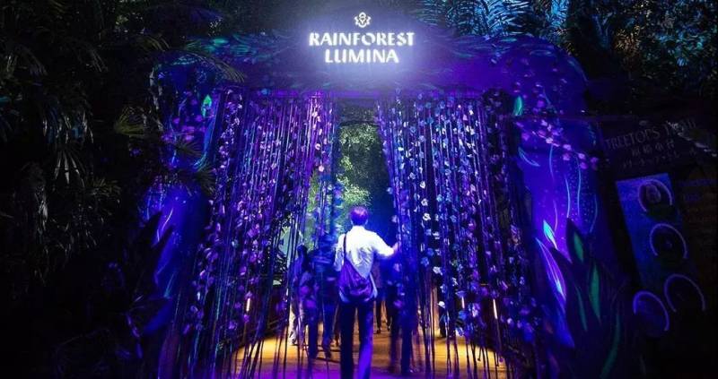 告別柵欄籠舍,去雨林中“偶遇”動物,是新加坡動物園首個采用的“開放式概念”。白天看動物,夜晚結合了光影和音效的多媒體夜行體驗。你可以在其中和動物一起玩耍,一起傾聽動物的聲音,也可以一起漫步在燈光雨林中享受炫目的視覺色彩。