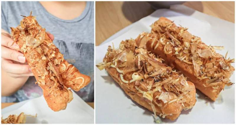 油條裏面塞著鱿魚肉糜,外皮酥脆