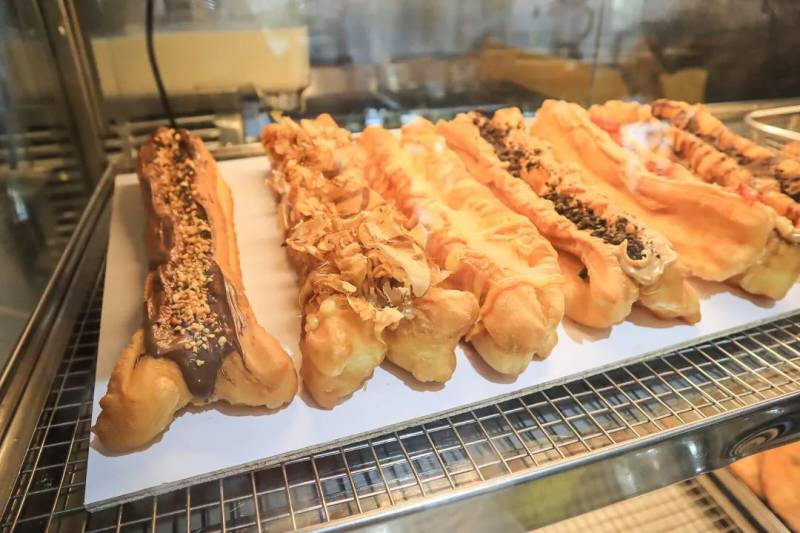 剛出鍋的油條塗上Nutella巧克力醬撒上花生碎