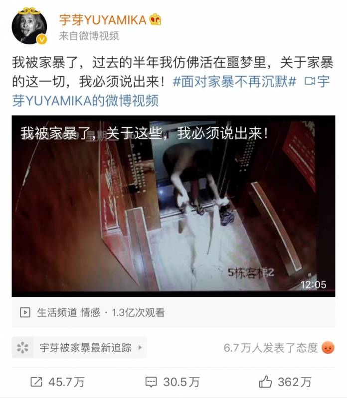 一個在社交媒體的網絡紅人,一個即將結婚的女孩,光天化日之下都被這樣淩辱。現實社會中,又有多少被家暴的女友,妻子乃至母親?