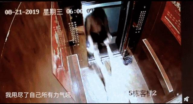 電梯這段視頻讓人不寒而栗,這個光著上半身的男人沖到電梯裏,對女孩進行拖拽,像在拽一條狗一樣,最後生生把她拖了出來。