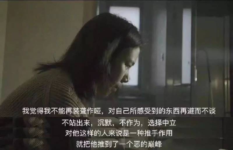 “我覺得我再不能裝聾作啞,對自己感受的東西再避而不談,不站出來,不沉默,不作爲,選擇中立,對他這樣的人來說是一種幫凶。”