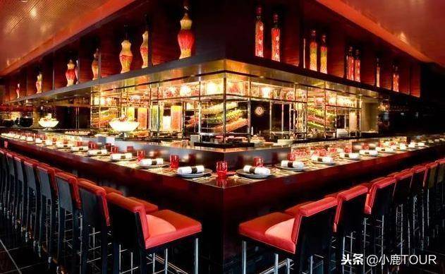 餐廳非常現代精致,比如室內設計,從電梯門開啓的一刻就讓您印象深刻,一組光滑的猩紅色、黑色和深色木質家具圍繞著您。