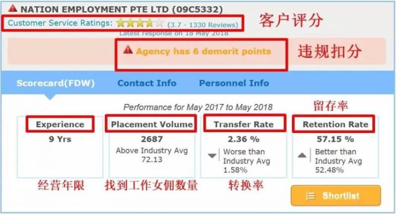 確認合法性後,你可以查詢中介機構的違規積分。所謂違規積分,是人力部對中介機構違法法律法規的計分處罰,當一個中介機構累計了12分以上違規積分後,就會被人力部列入重點監視對象。