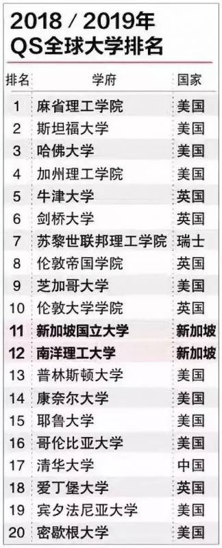 在高等教育方面,新加坡一直穩居亞太區第一的位置,在QS全球&亞洲大學排行榜上,新加坡國大和南洋理工從2018-2020年一直包攬亞洲前二。