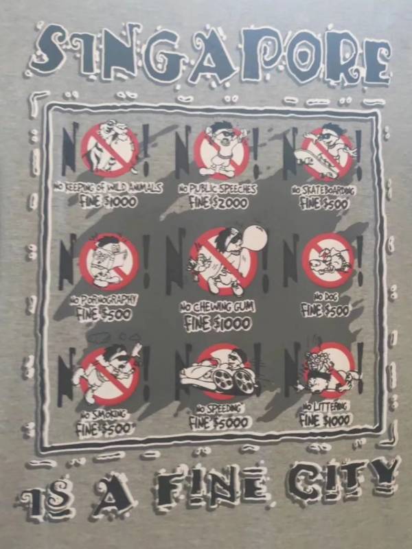 Justin:其實啊你只說對了一半兒,這fine city也叫“罰款之國”。大家都知道新加坡嚴刑峻法,舉幾個例子哈