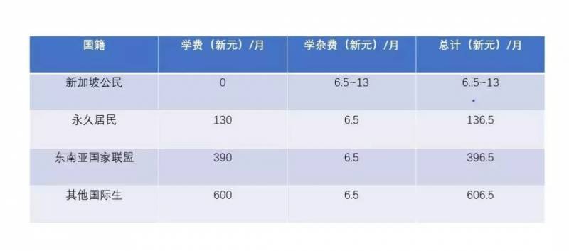 國際留學生一年的學雜費600—1300新元,而新加坡小學到高中一年僅需繳納13~33新元的學雜費。