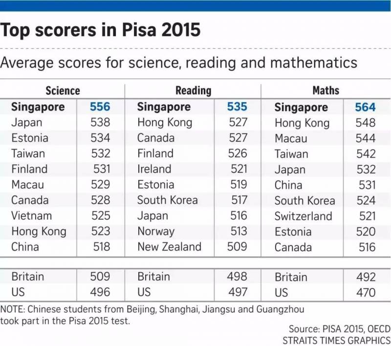 (OECD國家組織的學力評測中,新加坡獨占鳌頭)