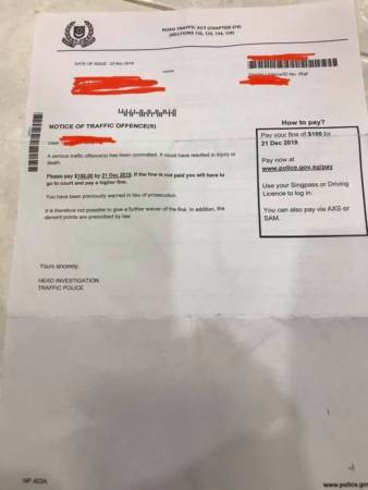 從網民所分享的罰單顯示,該網民于本月14日下午3時15分左右,在新加坡湯申路上段,被發現所戴的頭盔不合格,因此觸犯新加坡交通條規。