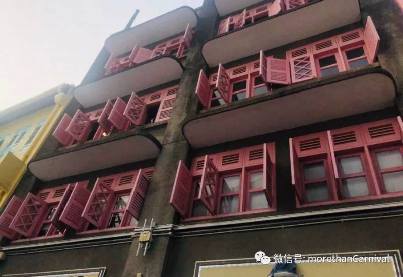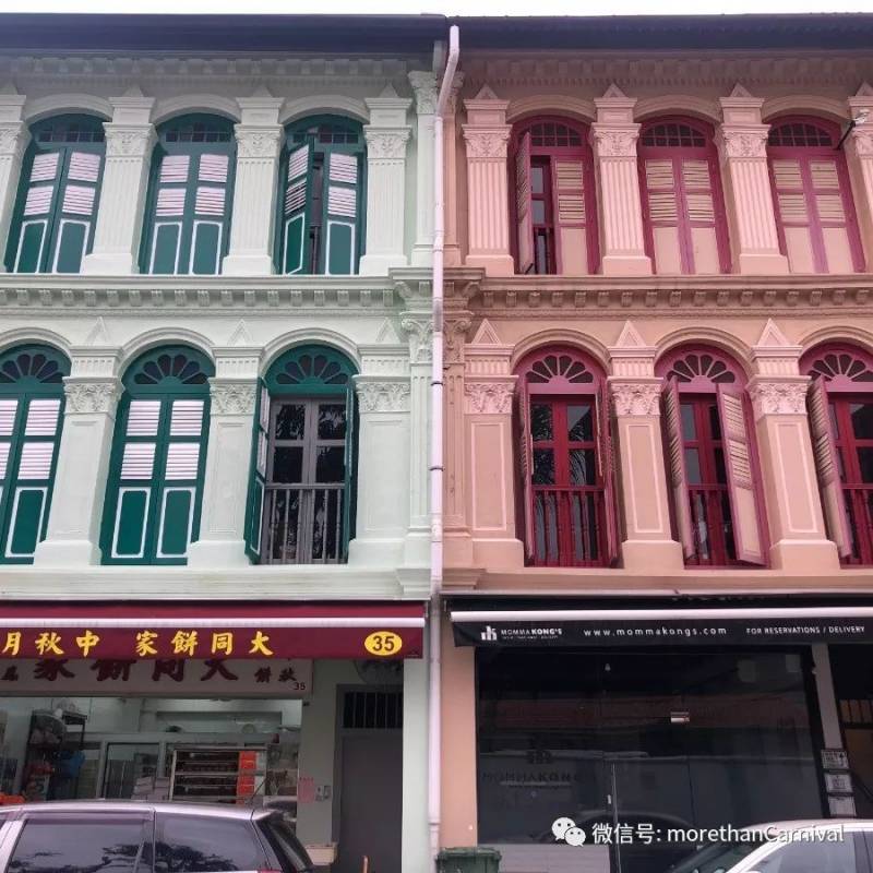 佛牙寺的對面是標准的馬來華人房屋,據傳從前的法律規定私人住宅的寬度不能超過三米,機智的馬來華人抓住法律中的漏洞,建造了單戶門臉不超過三米超長進深的扁長房屋。