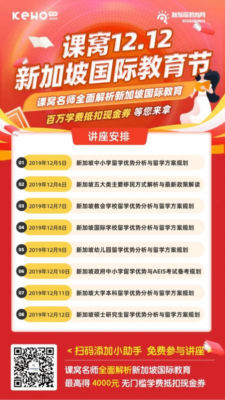 除此之外,我們課窩還送來了一系列的免費講座讓各位家長和同學們了解在留學新加坡中經常遇到的問題以及應對方案,讓各位家長更加從容的面對孩子低齡留學新加坡!
