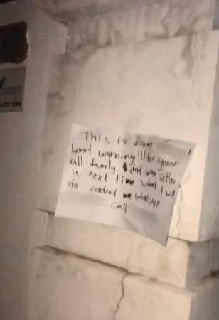 大耳窿留下字條,警告欠債者和家人立即還錢。
