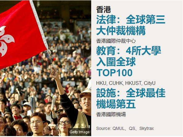 兩城還具備卓越的人才優勢。今年公布的QS世界大學排名中,四所香港的大學入圍全球前100名,排名最高香港大學(25名);新加坡入圍兩所,但排名靠前,新加坡國立大學排名11,南洋理工排名12,爲亞洲排名最高的兩所大學。兩座不大的城市卻聚集了如此優質的教育資源,實屬不易。