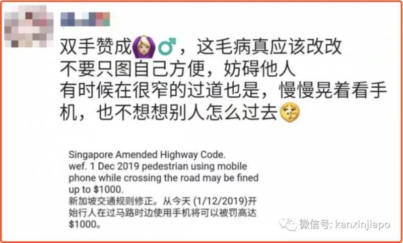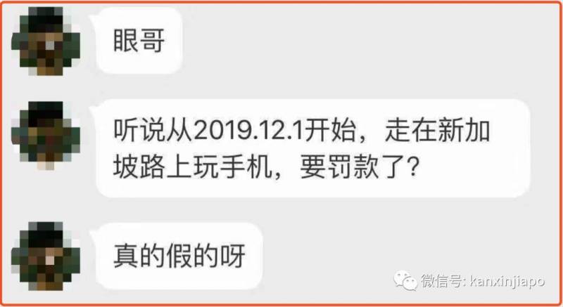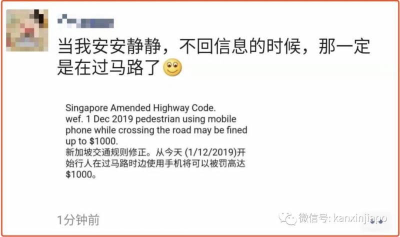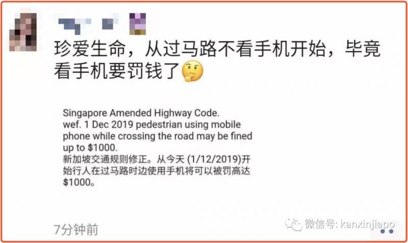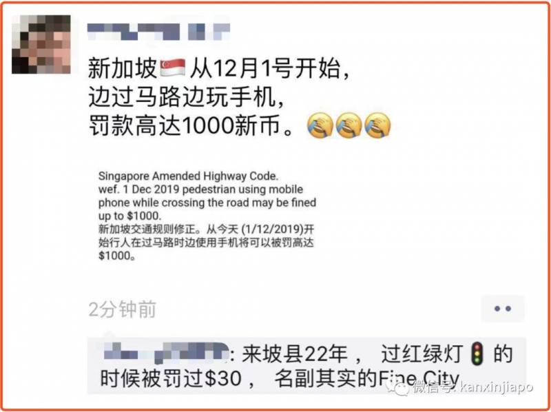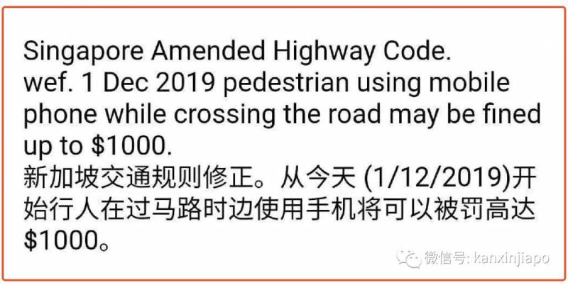 “從2019年12月1日起,行人在過馬路時用手機將被處以高達1000新幣的罰款!”