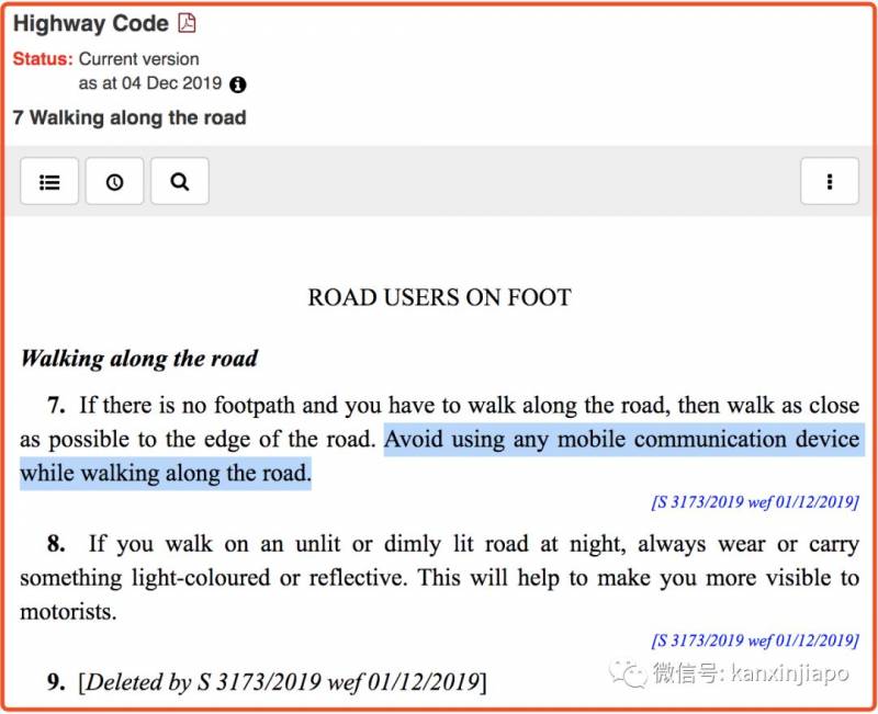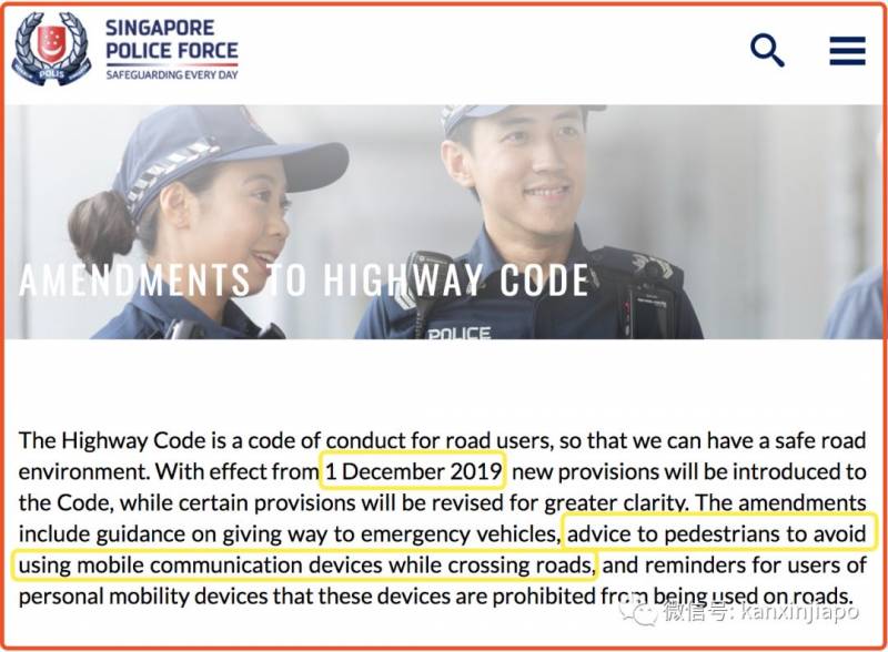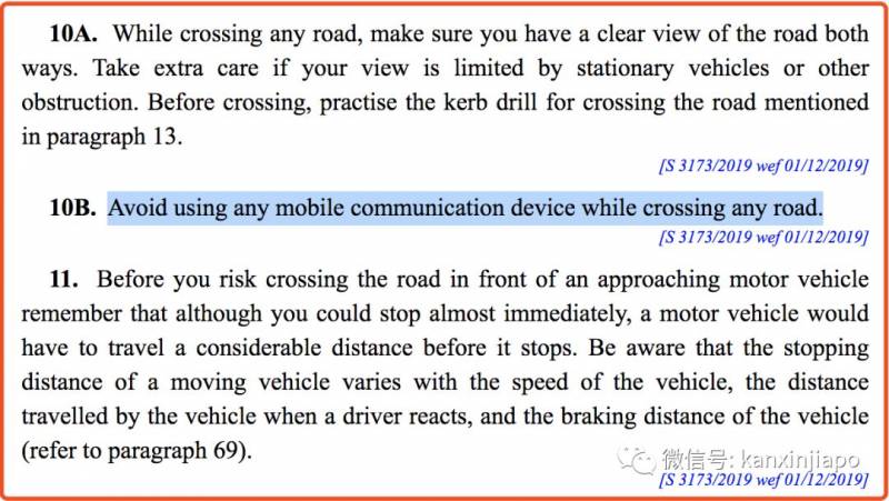 根據新加坡警察部隊文告,12月1日起,部分交通法規條款確實有所修改,也的確講到了關于行人用手機的部分。但是,卻對罰款只字未提,只是說建議行人過馬路時不要用手機。
