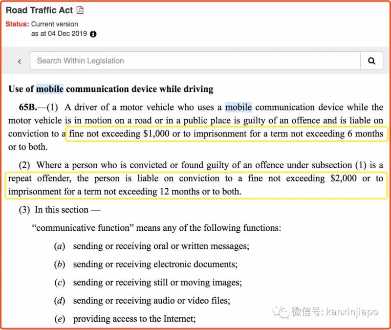 雖然目前新加坡對于行人使用手機沒有明確處罰,但司機在開車時使用手機,初犯者將面臨高達$1000的罰款、監禁少于6個月,或兩者兼施。慣犯則將面臨高達$2000的罰款、監禁少于12個月,或兩者兼施。