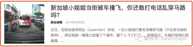 新加坡發生過的多起交通意外中,就有行人因爲過馬路時用手機,結果被撞飛。