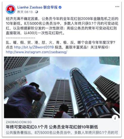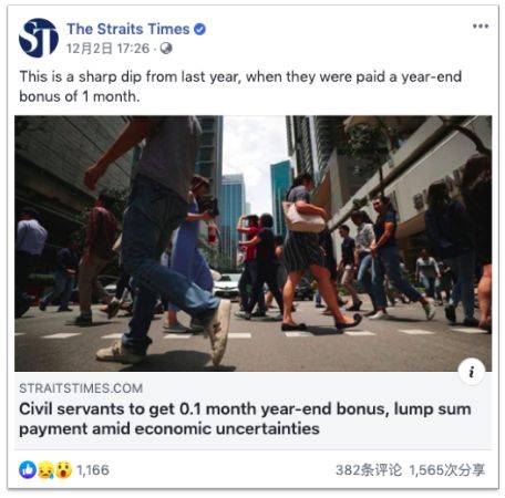 因爲在12月2日,新加坡公共服務署發布文告指出,新加坡大多數公務員今年年終都只能獲得0.1個月的可變動花紅!
