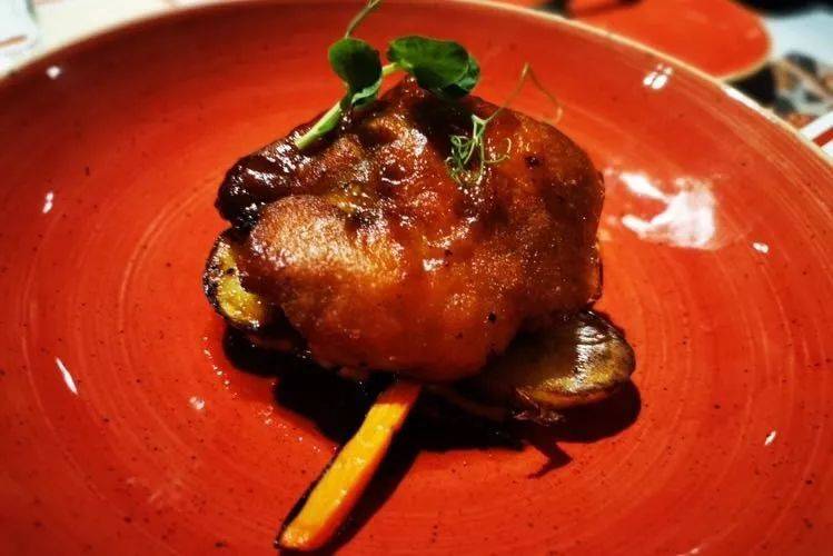 西式烤乳豬,皮相對沒有那麽脆,但是多了一層肉香,搭配烤土豆和胡蘿蔔泥,就是妥妥的一份西班牙烤乳豬,保准你吃的小肚溜圓意猶未盡。