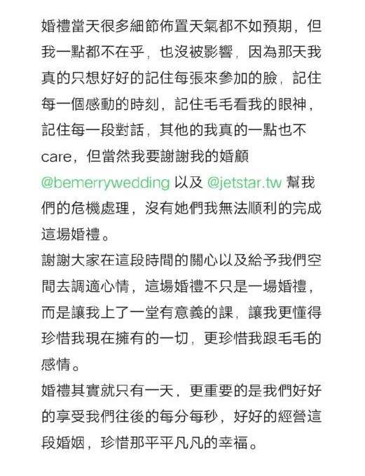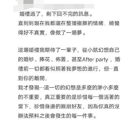毛加恩與女友羅雯上月29日舉行婚禮,盡管高以翔離世,婚禮當天仍將伴郎位置留給他。