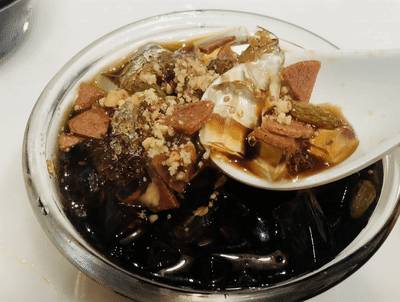 淋上了紅糖漿,撒上了山楂片和花生碎等
