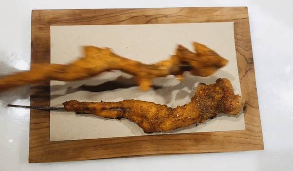 外邊包裹的炸衣薄而酥脆,略帶孜然香