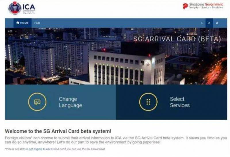 乘搭特定航空公司、長途巴士和渡輪的旅客,可通過ICA網站或手機應用提前提交個人信息,通關時只需出示護照,入境系統就能自動提取之前提交的電子入境卡可,讓通關過程更加快捷便利。