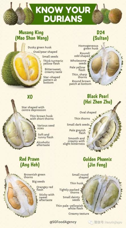 爲吃貨們操碎心的新加坡食品局,今年專門發布了一個包含各種品類榴梿的圖片,手把手教大家吃榴梿,可以說是最高級別的榴梿吃貨指南了!
