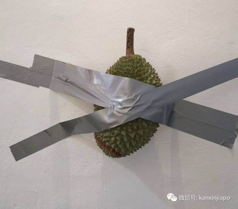 榴梿小哥這樣寫道:“粘在白牆上的榴梿,售價163056新幣。看起來像藝術,聞起來像屁。”