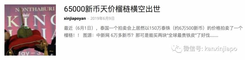 不過,玩笑歸玩笑。在榴梿季,這樣的金貴榴梿是真的存在的!今年6月份,就有人花了65000新幣買了一個榴梿。